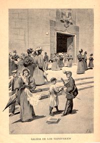 "Salida de los Trinitarios" grabado-ilustración sobre una pintura del mismo nombre de Manuel Puig Genís