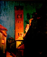 Incendio de la Catedral de Vic, apunte del natural desde la terraza de la casa del pintor