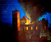 Incendio en la catedral de Vic, pintura a partir del apunte anterior