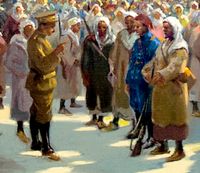 Oficial dando órdenes a tropas indígenas.