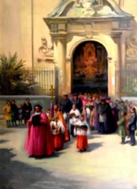 "Salida de los Trinitarios" grabado-ilustración sobre una pintura del mismo nombre de Manuel Puig Genís